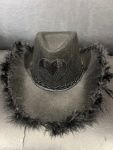SOMBRERO COWBOY CORAZON Y PLUMAS NEGRO Y NEGRO